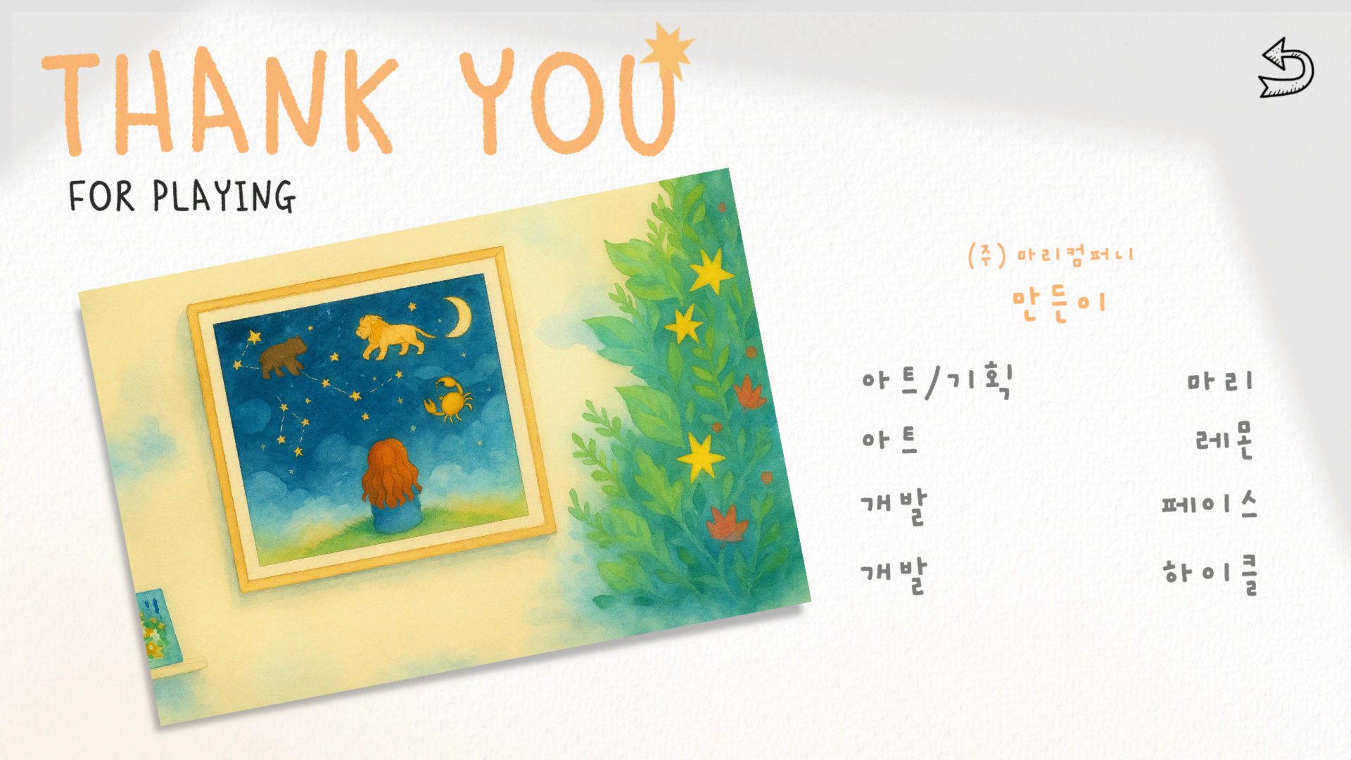 This game is a healing project created over 43 hours during a game jam my company participated in as a team, under the theme “Star.”